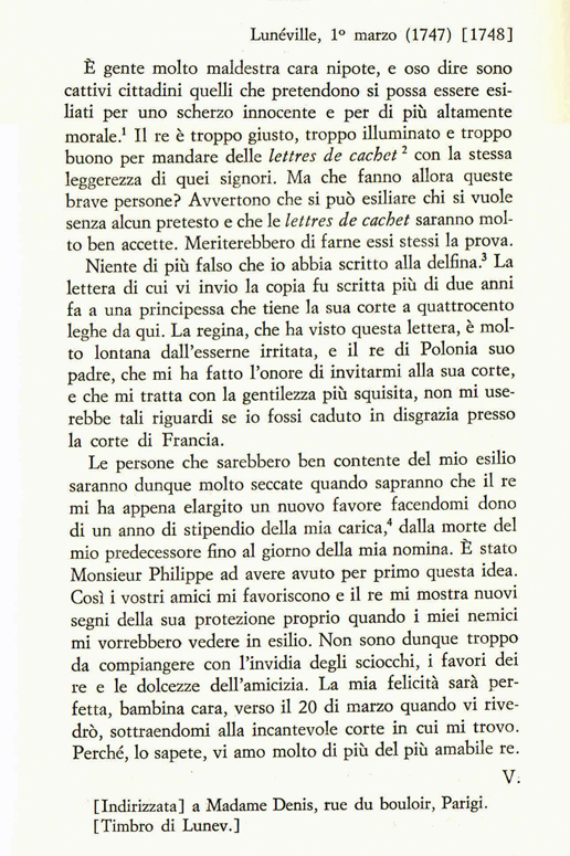 1 Marzo 1748, Voltaire alla (indecentemente) amata nipote