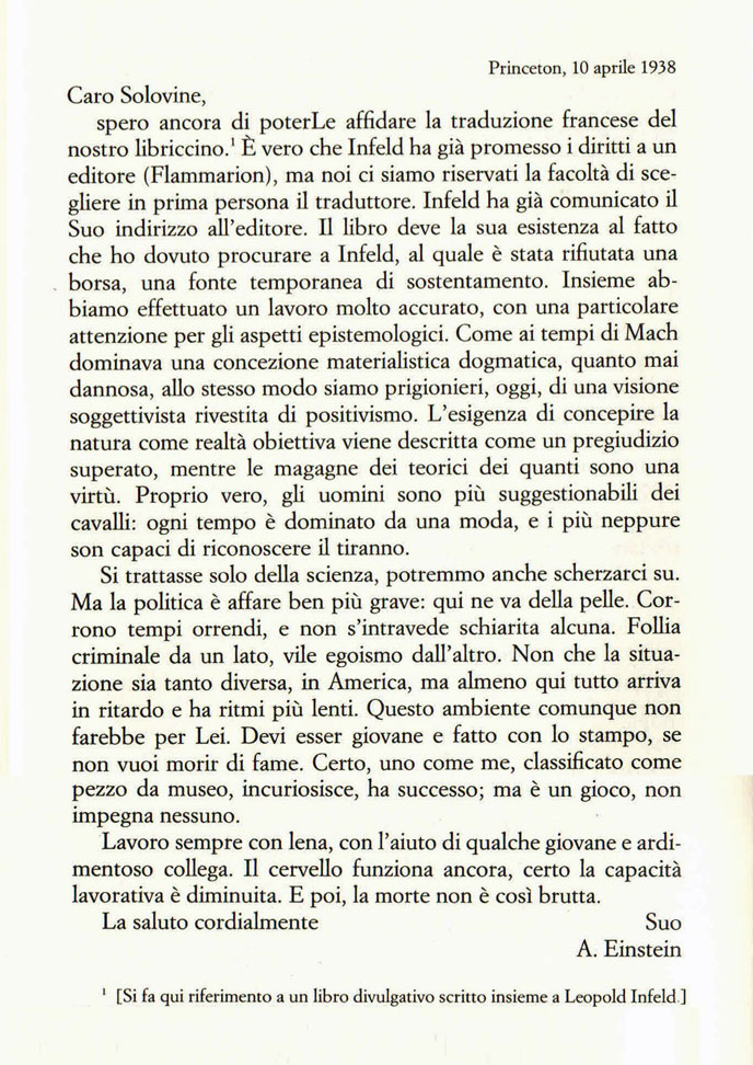 10 Aprile 1938, Albert Einstein scrive a Maurice Solovine