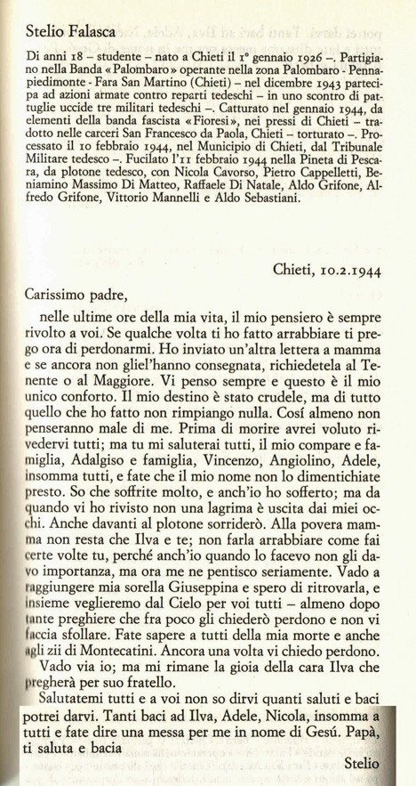 10 Febbraio 1944, Stelio Falasca (partigiano), al padre