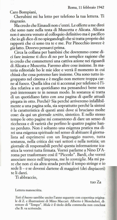 11 Febbraio 1942, Zavattini a Bompiani