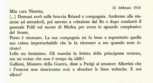 12 Febbraio 1916, Luigi Cadorna alla moglie