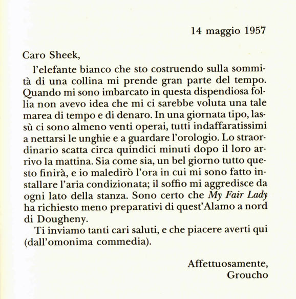 14 Maggio 1957, Groucho Marx a Arthur Sheekman