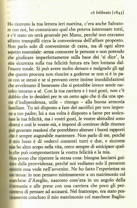 16 Febbraio 1843, Costanza D’Azeglio (cognata di Massimo) al figlio Emanuele