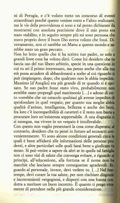 Filosofia (di vita) e fede cristiana in questa sensata donna ottocentesca che consiglia il figlio. Emerge l’infelicità matrimoniale di Massimo D’Azeglio.