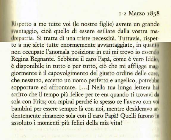 2 Marzo 1858, la Regina Vittoria alla figlia Imperatrice di Germania
