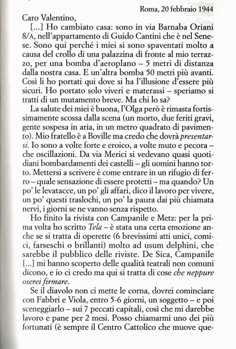 20 Febbraio 1944, Zavattini a Bompiani