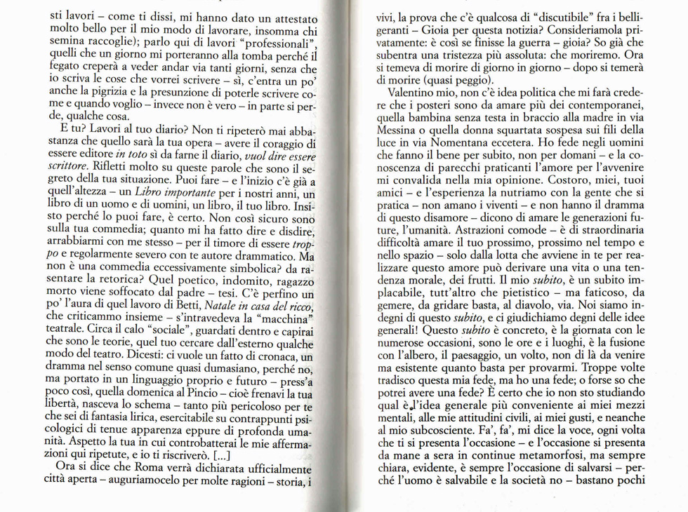Insieme all’inarrestabile e vulcanico stacanovismo di Zavattini ne emergono le ragioni propulsive: la fede nel presente, la volontà di agire nell’ora, perché è il presente il momento più importante.