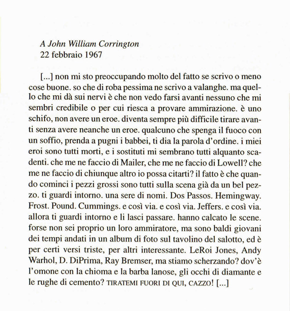 22 Febbraio 1967, Charles Bukowski a John William Corrington