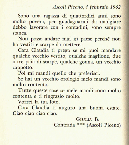 4 Febbraio 1962, a Claudia Cardinale (da una fan)