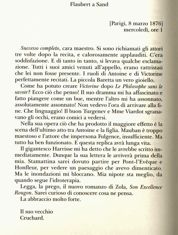 8 Marzo 1876, Gustave Flaubert a George Sand