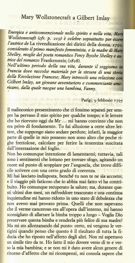 9 Febbraio 1795, Mary Wollstonecraft a Gilbert Imlay